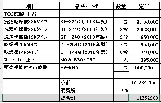 (20260306販売中)2018年式TOSEI洗濯乾燥機・乾燥機・両替機・スニーカーランドリー