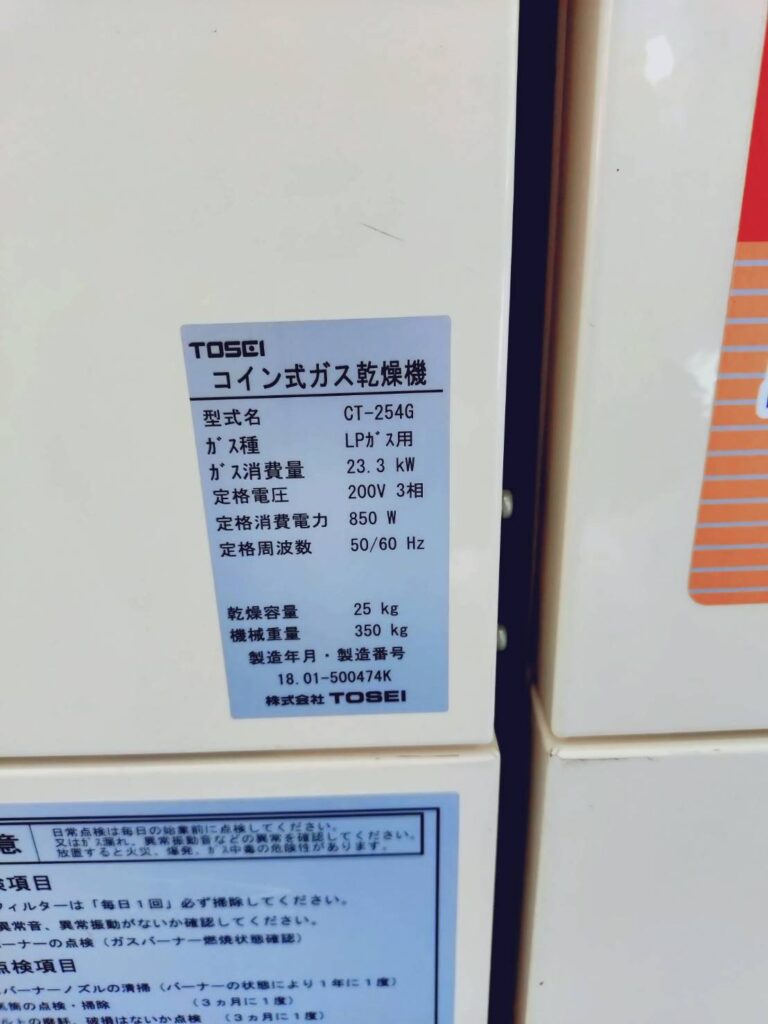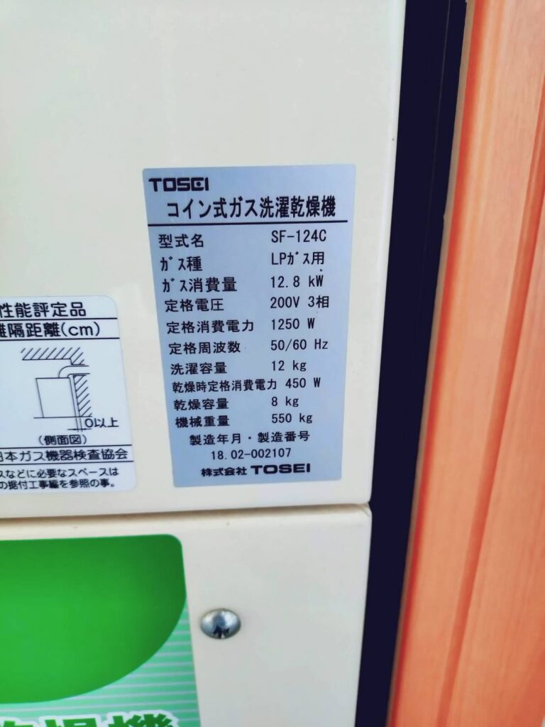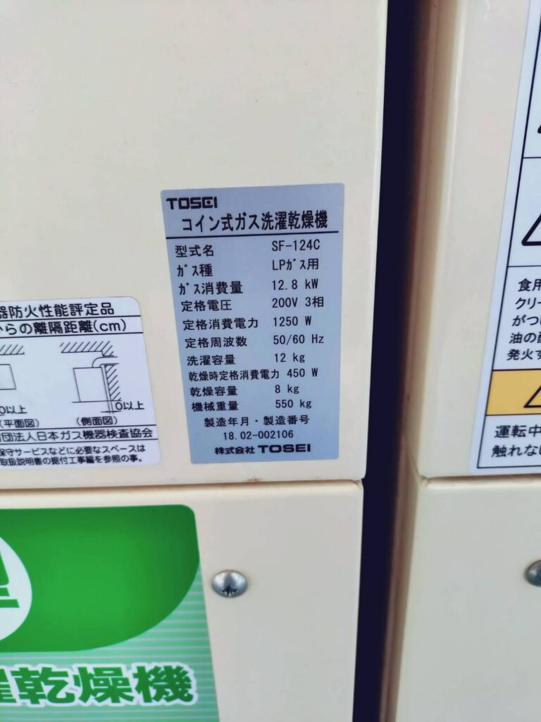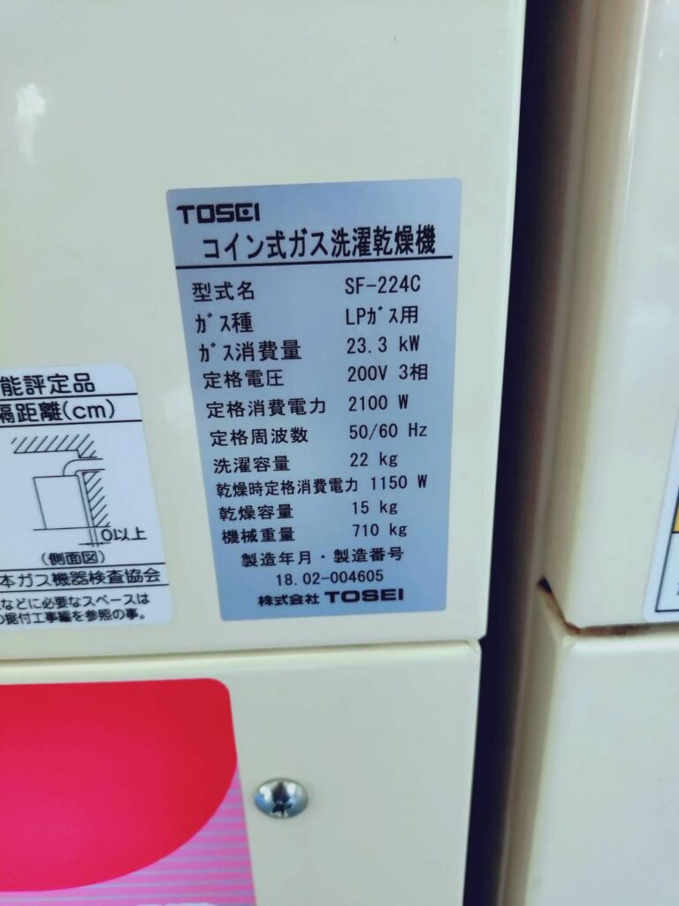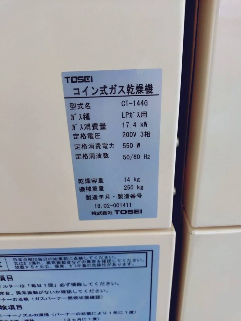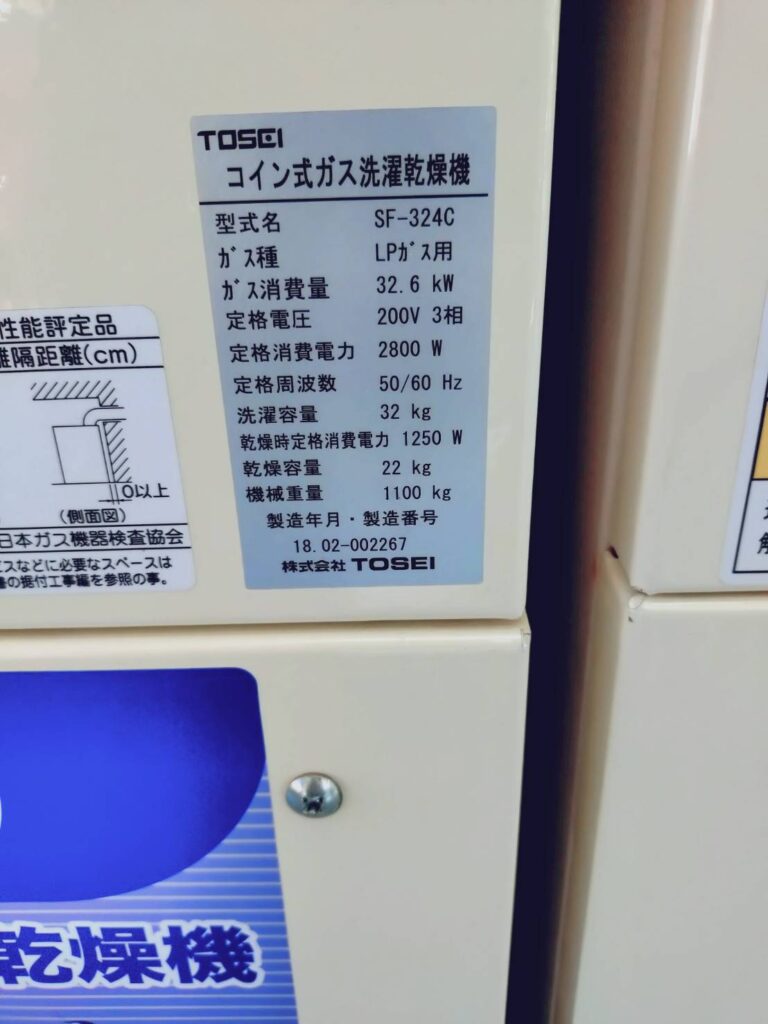 【コインランドリーの機器詳細】