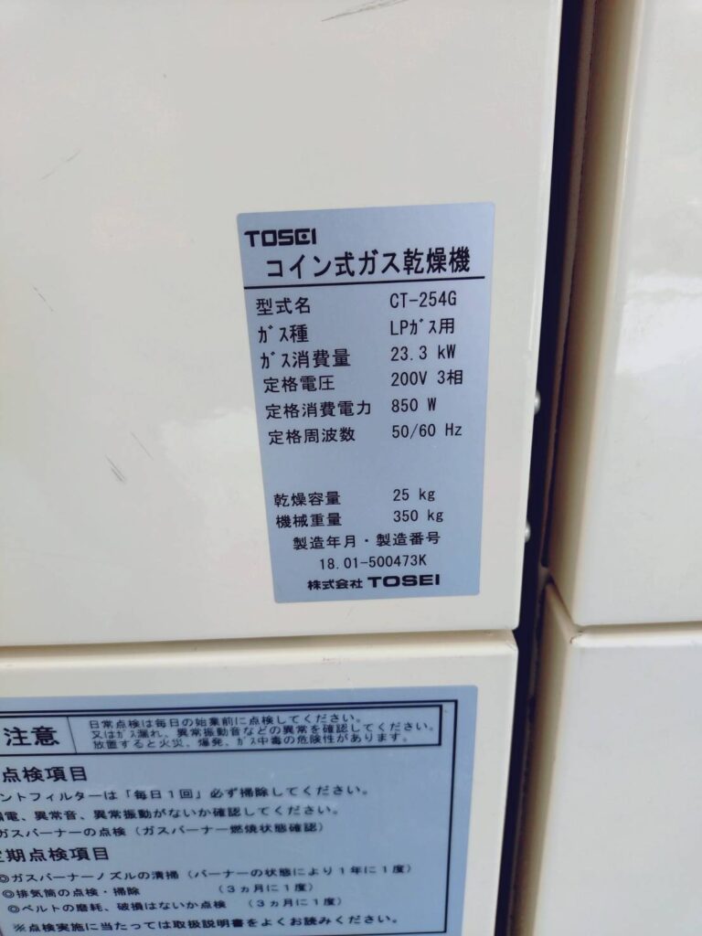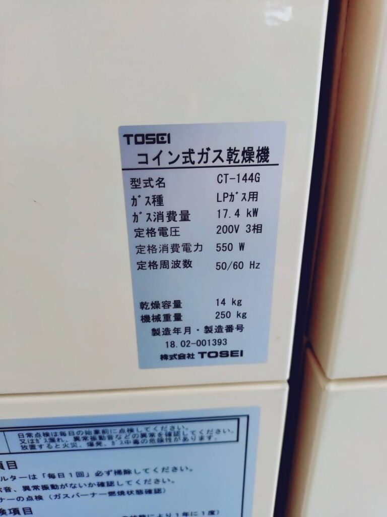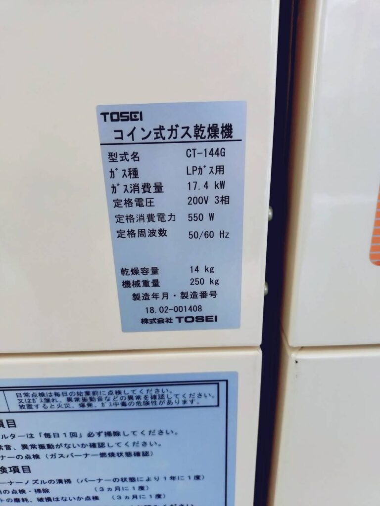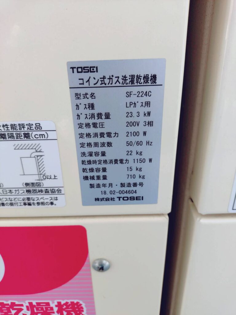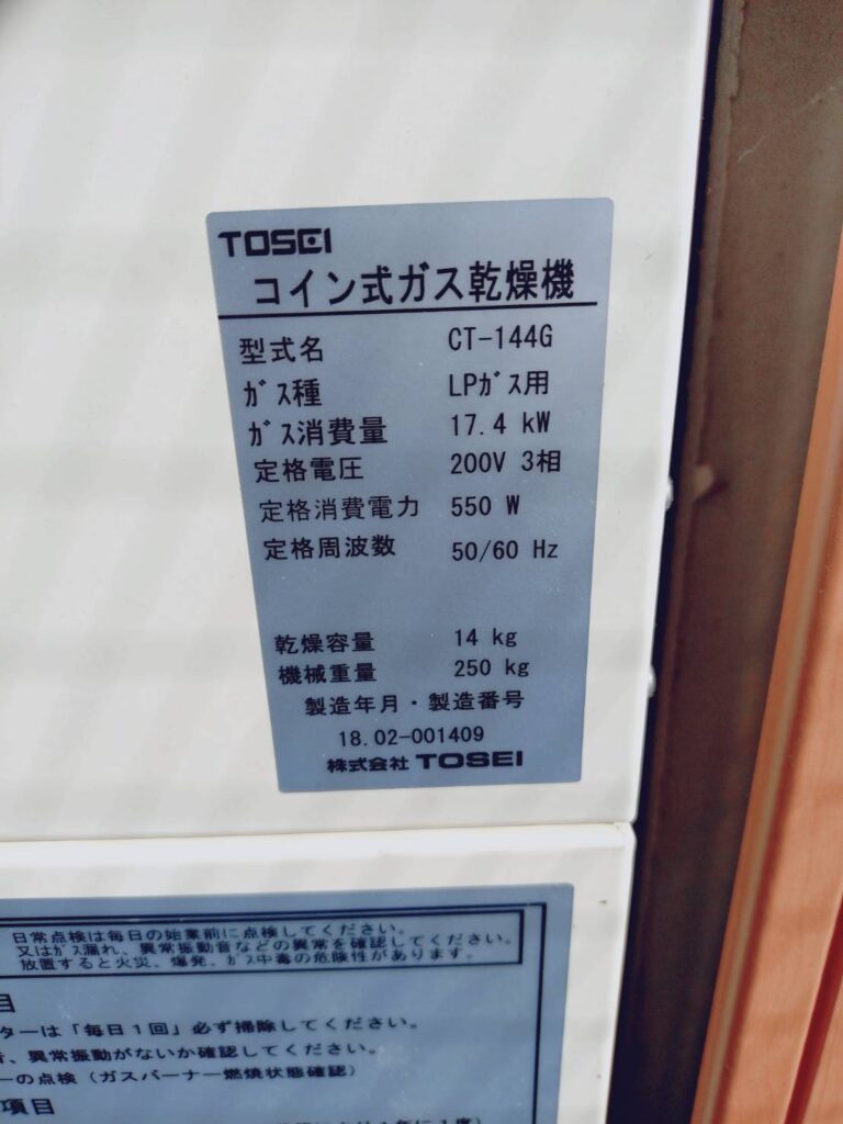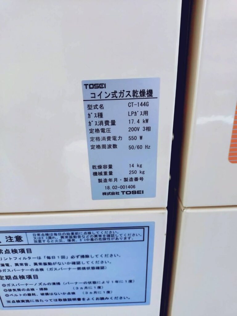 【コインランドリーの機器詳細】